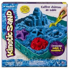 Набір піску для дитячої творчості - KINETIC SAND ЗАМОК З ПІСКУ (блакитний, 454 г, формочки, лоток)